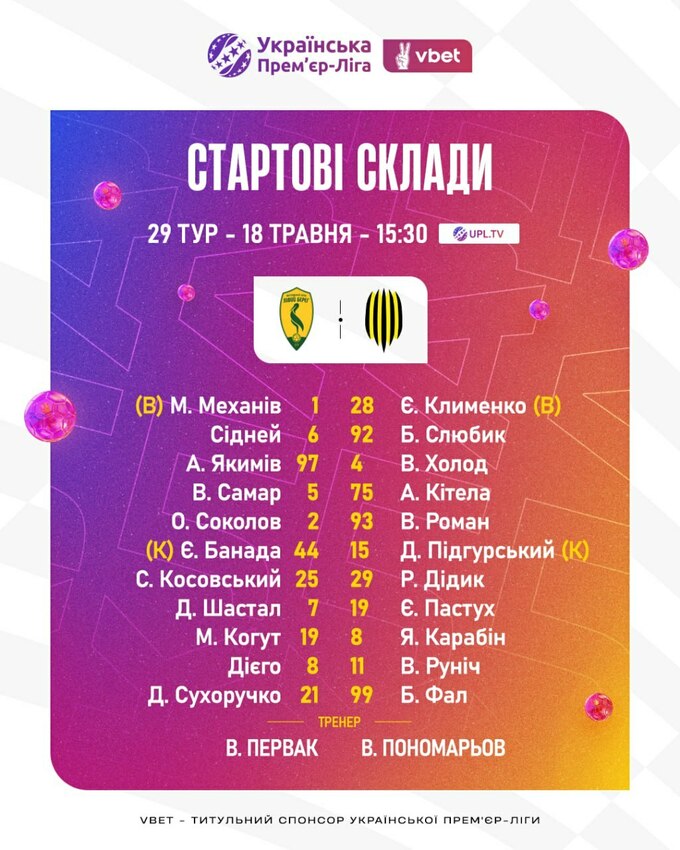 Поединок 29-го тура Украинской Премьер-лиги состоится 18 мая в 15:30