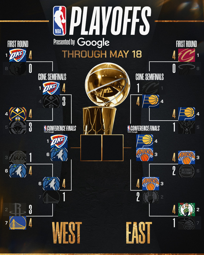- В финале Западной Конференции «Оклахома-Сити Тандер» встретится с «Миннесотой Тимбервулвз».
