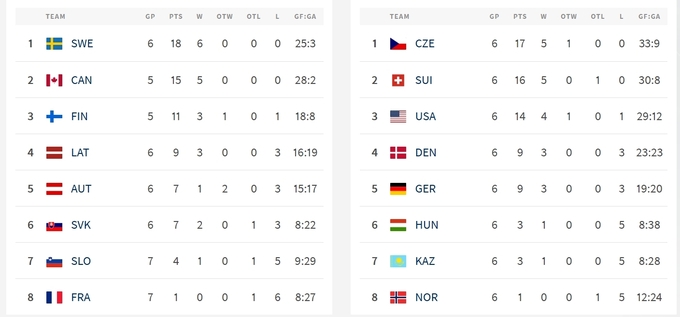 В другом матче Чехия обыграла Германию и с 17 очками вышла на первое место, опережая Швейцарию и США за один тур до завершения этапа.