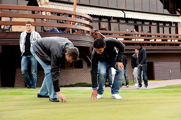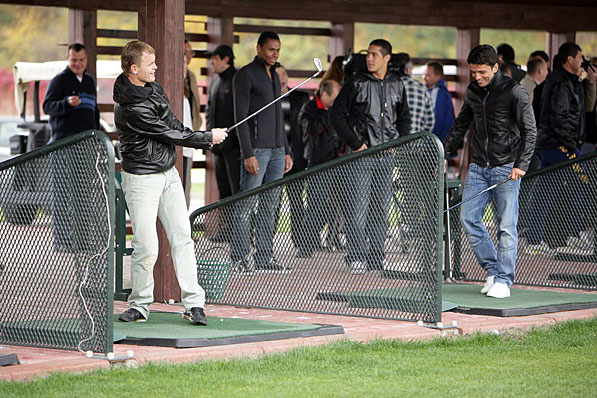 Лишь Марцин Буркхард имел маломальское представление об игре, он, оказывается, практиковался в гольфе во время выступлений в Швеции. Остальной коллектив игру аристократов видел лишь по телевизору. Нелепый вид мастеров футбола, впрочем, пришелся по душе президенту Ярославскому. Ведь намного важнее, что владелец клуба «Superior» Юрий Сапронов обещает построить на территории современный отель, который примет одну из команд-участниц Евро-2012. И это при том, что картина подготовки к чемпионату в Украине не выглядит так весело, как потуги Девича, Коэльо и Эдмара повторить удары знаменитого Тайгера Вудса. К тому же в последнее время Министерство Семьи, молодежи и спорта и собственно сам министр Юрий Павленко не только делают ничтожно мало, а даже препятствуют развитию спорта на местах. Что не только необъяснимо, но и вовсе не смешно. Особенно Сапронову и Ярославскому.