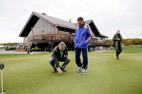 Александр Ярославский, как известно, нынче главный координатор подготовки Харькова к чемпионату Европы 2012-го года. И приглашение президента «Superior Golf Club» Юрия Сапронова оказалось как нельзя кстати, ведь удалось объединить акцию по паблисити популярной команды с инспекцией еще одного пятизвездочного объекта в городе.