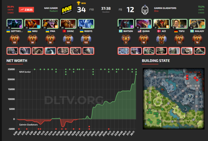 NAVI Junior подходили к этому матчу после двух поражений – от Edge и Talon Esports. Gaimin Gladiators находились в топе турнирной таблицы, но после такого провала, ситуация для них поменяется.