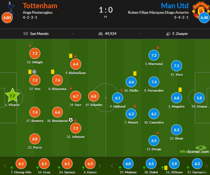 Оценки WhoScored за матч Тоттенхэм – Манчестер Юнайтед (1:0)