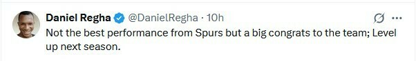 Daniel Regha: Не лучшее выступление «Тоттенхэма», но большие поздравления команде; выйдем на новый уровень в следующем сезоне.
