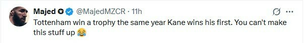 Majed: Тоттенхэм выигрывает трофей в том же году, когда Кейн выигрывает свой первый. Такого не придумаешь.