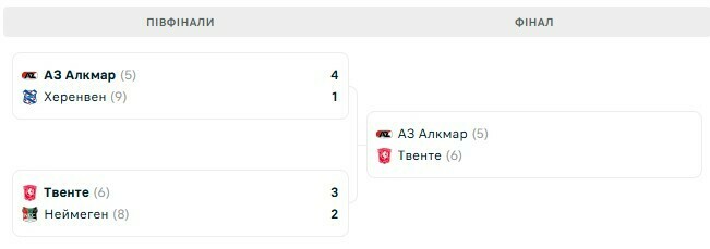 Твенте одержал драматичную победу над Неймегеном со счетом 3:2 после дополнительного времени и тоже вышел в финал.
