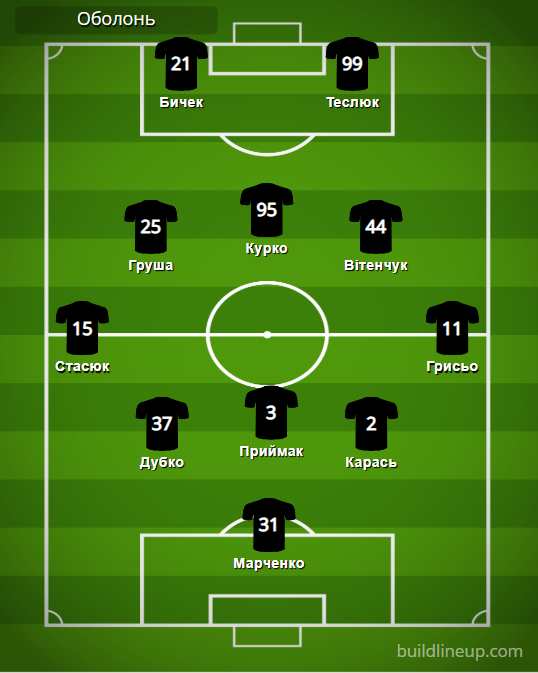 «Оболонь»: Марченко – Стасюк, Дубко, Приймак (Ломницкий, 84), Карась, Грисьо (Суханов, 73) – Груша, Курко (Слободян, 73), Витенчук – Бичек (Тарануха, 59), Теслюк (Устименко, 59).