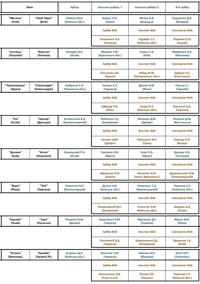 Комитеты Украинской ассоциации футбола назначили официальных лиц на 30-й тур.