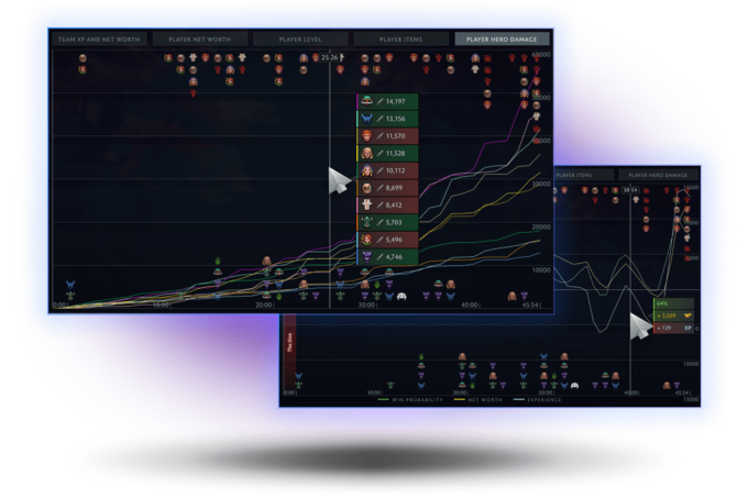 Улучшена послематчевая система с графиками и уроном от героев в определенный момент игры: