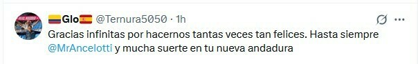 NazElBlanco: Вы заставили меня много страдать, но и наслаждаться как никто другой. Со мной случается что-то вроде Модрича. Я знаю, что это жизненный факт и я считаю решение Мадрида правильным... но как трудно прощаться с хорошими людьми. Удачи и возвращается, когда захочется. Это ваше место в мире, мистер Анчелотти.