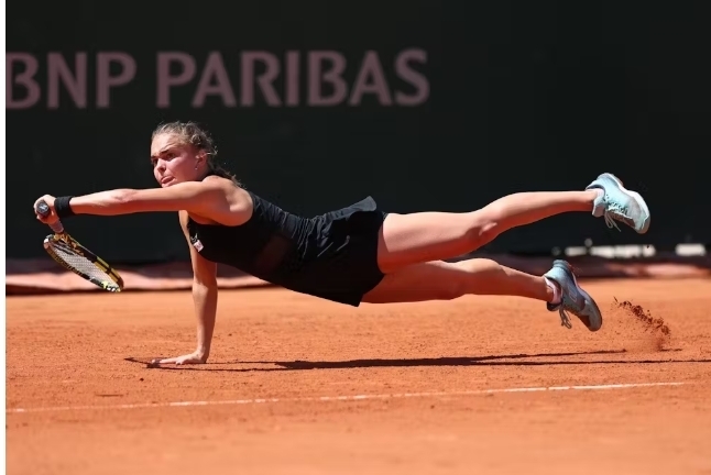 ФОТО. Бейлек в полете пыталась вернуть мяч на половину Стародубцевой