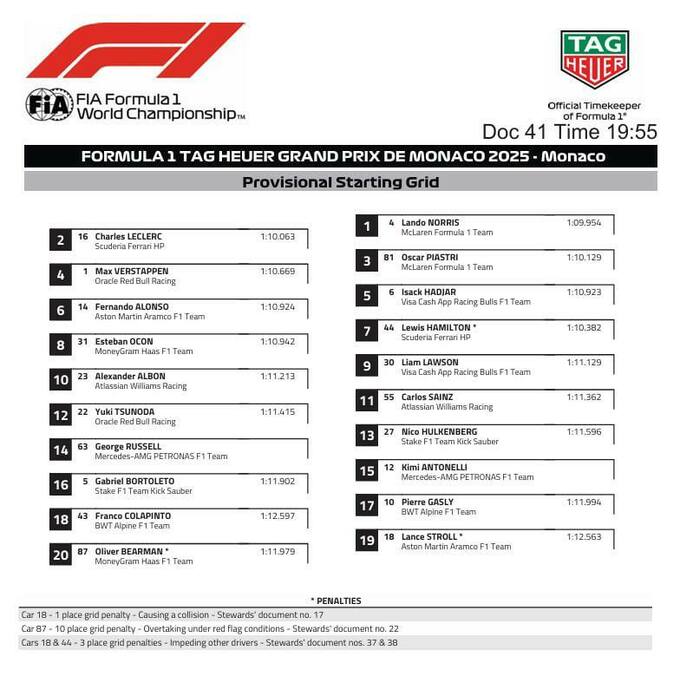 25 мая 2025 года в 16:00 на улицах Монте-Карло состоится гонка в рамках Гран-при Монако – восьмого этапа сезона Формулы-1 2025.