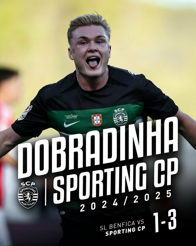 Недавно трофей чемпионата Португалии тоже взял Спортинг (82 пункта), опередив Бенфику на два очка (80 баллов).