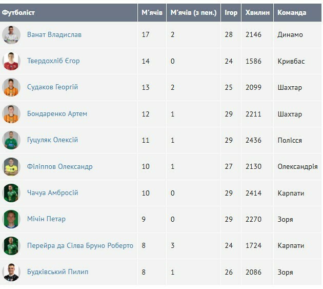 Ванат забил 17 мячей. Форвард Динамо стал лучшим бомбардиром УПЛ