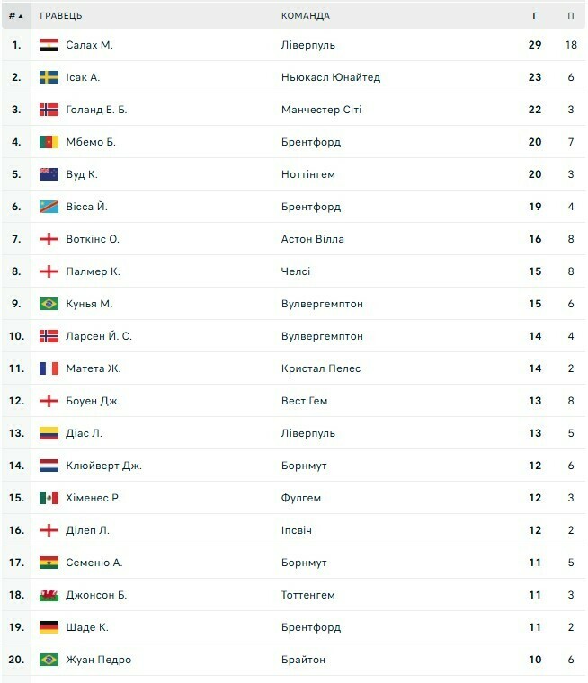 По количеству голов Салах (29) обошел Александера Исака из Ньюкасла (23) и Эрлинга Холанда из Манчестер Сити (22).
