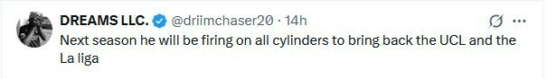 DREAMS LLC: В следующем сезоне он будет работать на полную мощность, чтобы вернуть ЛЧ и Ла Лигу.