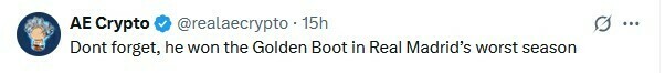 AE Crypto: Не забывайте, он выиграл Золотую бутсу в самом плохом сезоне «Реала».