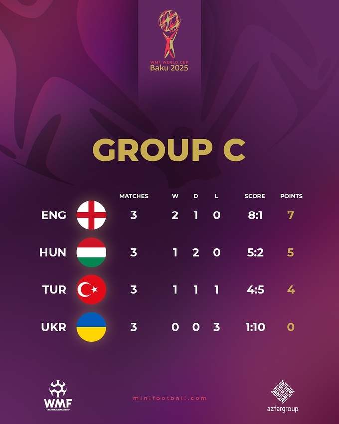 Итоговое положение в группе C: Англия (7 очков), Венгрия (5), Турция (4), Украина (0).