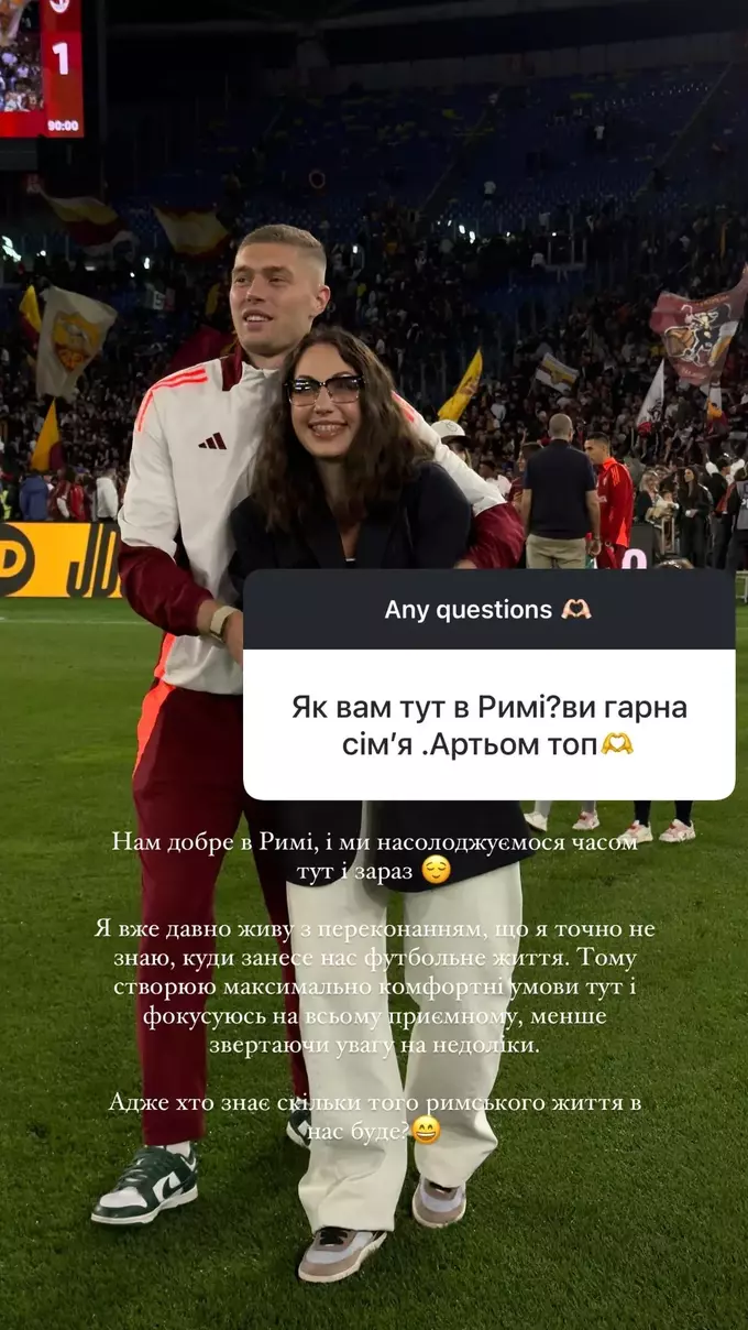 Форвард «Ромы» Артём Довбик завершил сезон без выхода в Лигу чемпионов, а его жена Юлия поделилась размышлениями о жизни в Италии.