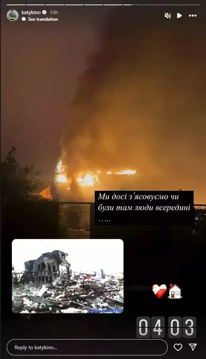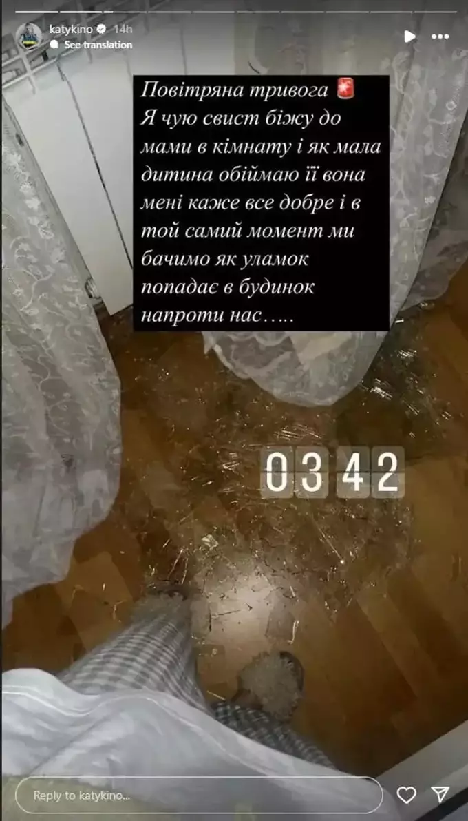 В Instagram она назвала этот день самым страшным и показала фото разрушенного окна.