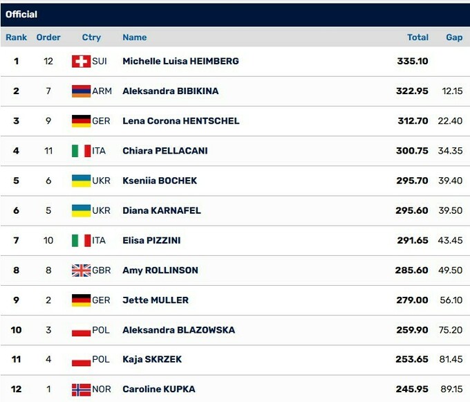 - 1. Мишель Хаймберг (Швейцария) – 335.10