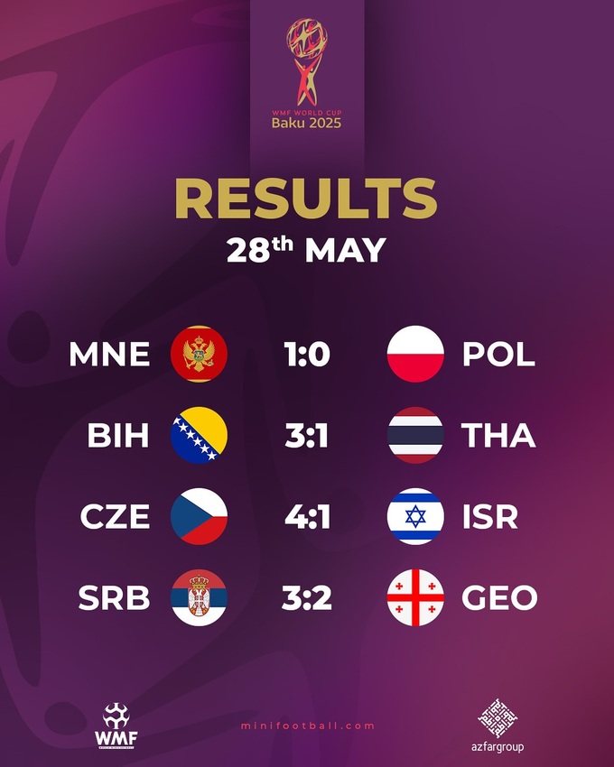 В Азербайджане определены четвертьфиналисты ЧМ-2025 по мини-футболу.