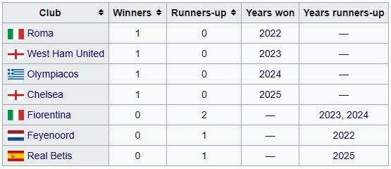 Историческая таблица. Все трофеи Лиги конференций: у кого сколько побед