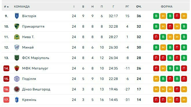 Диназ и Кремень выбыли из Первой лиги, а Металлург и Подолье проведут переходные поединки с представителями Второй лиги.