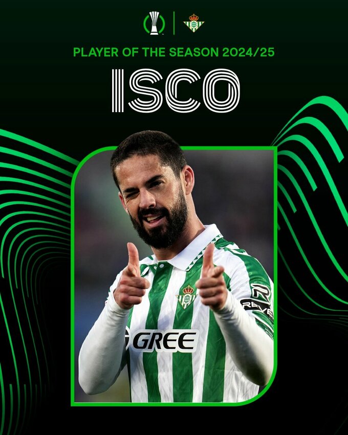 Полузащитник испанского «Бетиса» Иско признан лучшим игроком Лиги конференций в сезоне 2024/25.