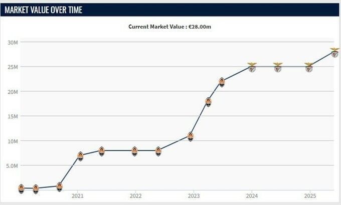 Обновлены трансферные стоимости игроков чемпионата Португалии. Цена на 23-летнего украинца выросла с 25 до 28 миллионов евро, и это новый наивысший показатель в карьере Трубина. Согласно текущей оценке – он входит в топ-10 самых дорогих вратарей мира.