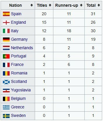Достижения в финалах Лиги чемпионов (КЕЧ) по странам