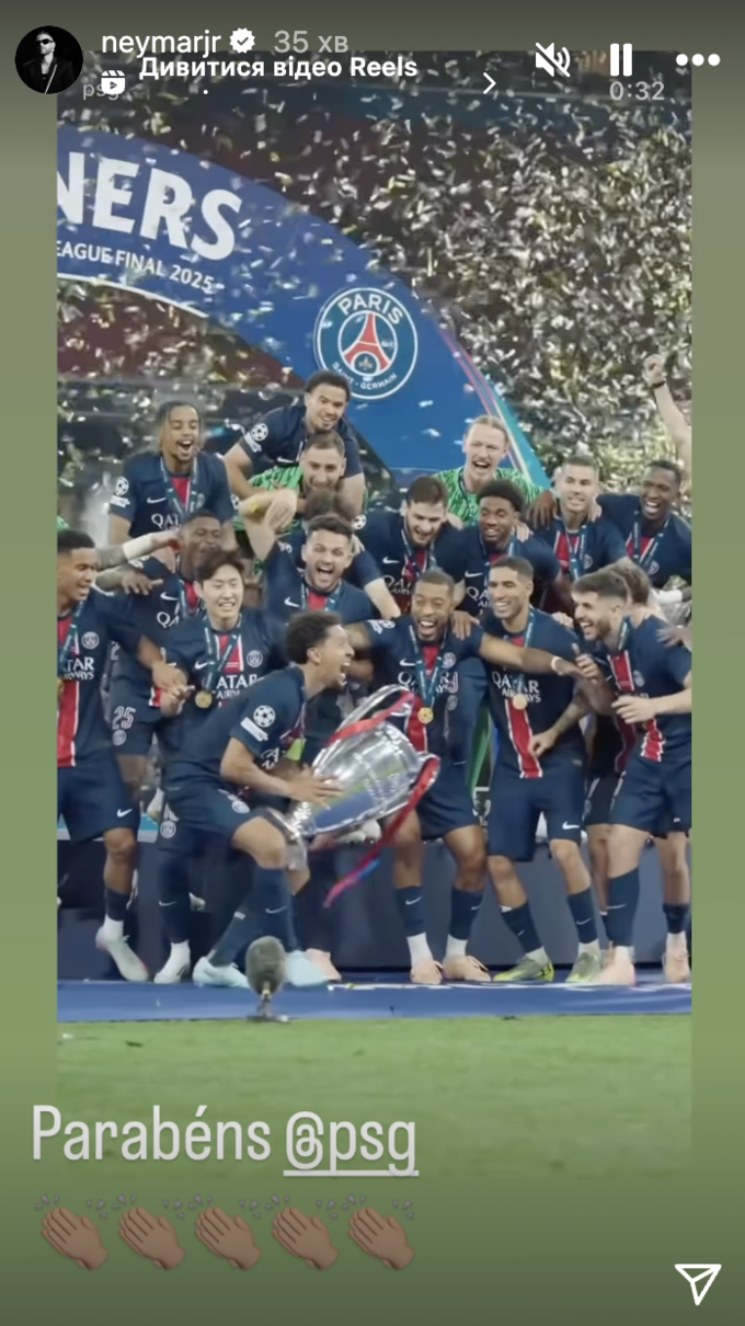 «Поздравляю, ПСЖ», – написал Неймар в Инстаграме.