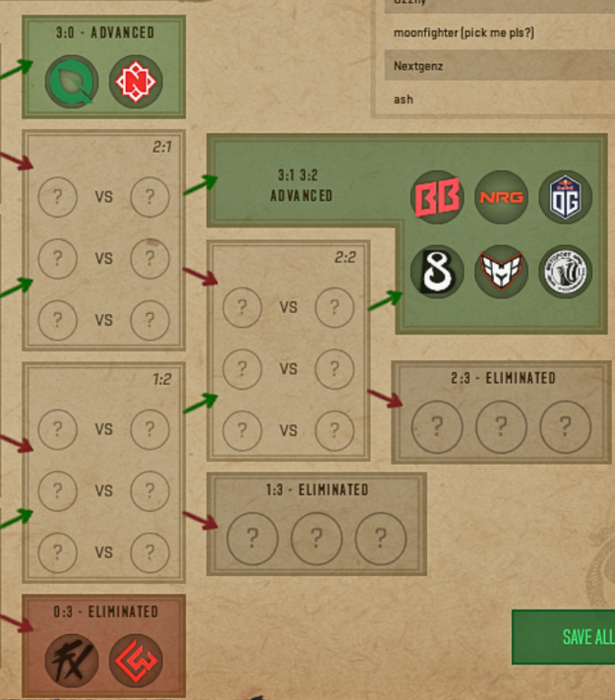 Исходя из Пикема s1mple, он ожидает, что в следующий этап пройдут: bb team, OG, NRG Esports, B8, HEROIC и Metizport.