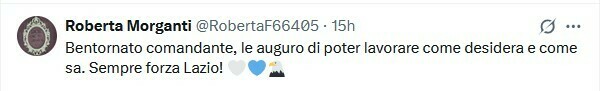 Roberta Morganti: Добро пожаловать, командир, желаю вам работать так, как вы хотите и умеете. Всегда Forza Lazio!