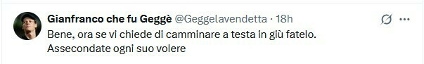 Gianfranco che fu Geggè: Ладно, а теперь, если он попросит вас ходить вниз головой, сделайте это. Выполните каждое его желание.