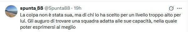 spunta_88: Это была не его вина, а вина тех, кто выбрал его на слишком высокий для него уровень. Надеюсь, он найдет команду, которая соответствует его способностям, где он сможет проявить себя наилучшим образом.