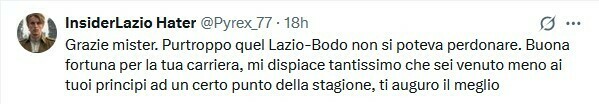 InsiderLazio Hater: Спасибо, мистер. К сожалению, эту игру Лацио-Бодо невозможно простить. Удачи в вашей карьере, мне очень жаль, что вы изменили своим принципам в определенный момент сезона, желаю вам всего наилучшего.