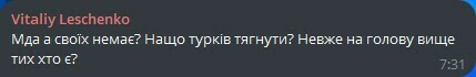 Vitaliy Leschenko: Мда а своих нет? Зачем турок тащить? Неужели на голову выше тех, кто есть?