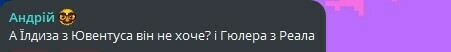Андрій: А Йылдыза из Ювентуса он не хочет? И Гюлера из Реала.