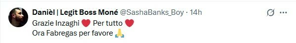 Danièl | Legit Boss Moné: Спасибо, Индзаги ❤️ За все ❤️ А теперь Фабрегас, пожалуйста 🙏