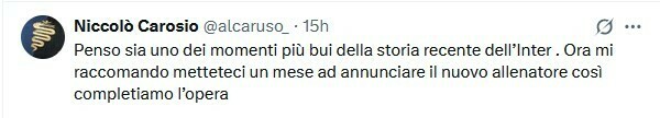 Niccolò Carosio: Я думаю, что это один из самых мрачных моментов в новой истории «Интера». Теперь, пожалуйста, потратьте месяц на объявление нового тренера, чтобы мы могли завершить работу.