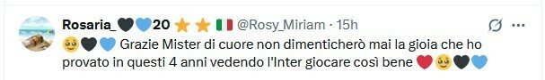 Rosaria_: Спасибо, мистер, от всего сердца. Я никогда не забуду ту радость, которую я испытывал все эти 4 года, наблюдая за такой хорошей игрой «Интера» ❤️
