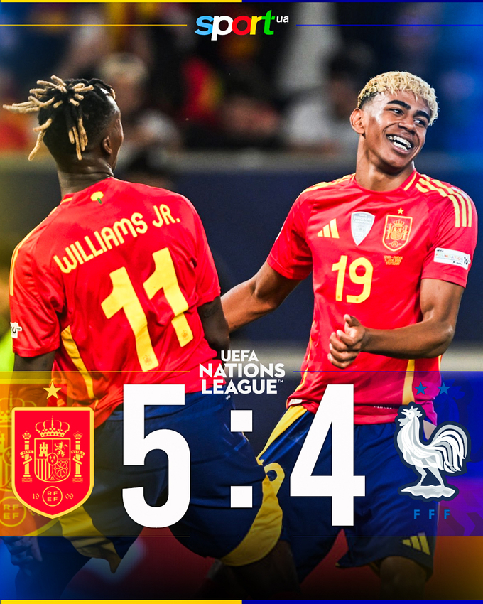 Феерию устроил Ламин Ямаль, который забил два гола французам. При счете 5:1 испанцы расслабились и пропустили три гола.
