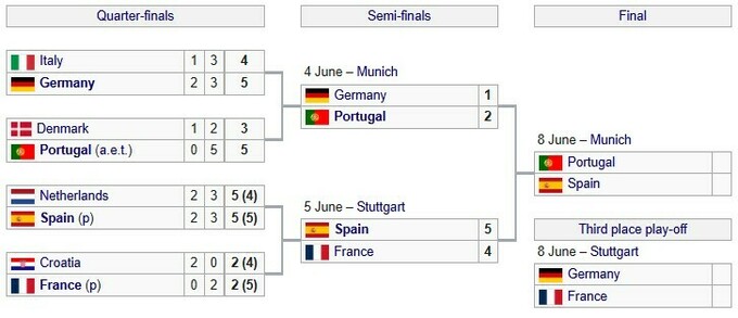 Финальный поединок между Португалией и Испании пройдет 8 июня в 22:00 в Мюнхене на Альянц Арене.