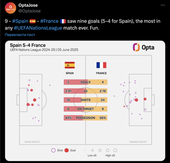 В полуфинальном поединке Лиги наций между сборными Испании и Франции был установлен рекорд турнира по количеству забитых мячей за матч - 9 (со счетом 5:4 победили испанцы).