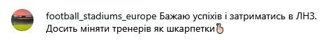 football_stadiums_europe: Желаю удачи и задержаться в ЛНЗ. Хватит менять тренеров как носки.