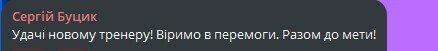 Сергій Буцик: Удачи новому тренеру! Верим в победы. Вместе к цели!