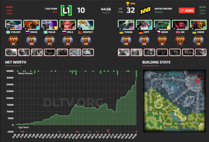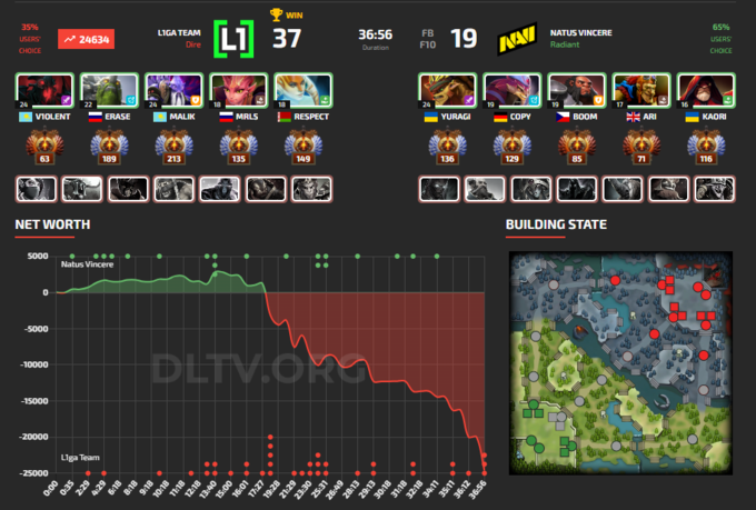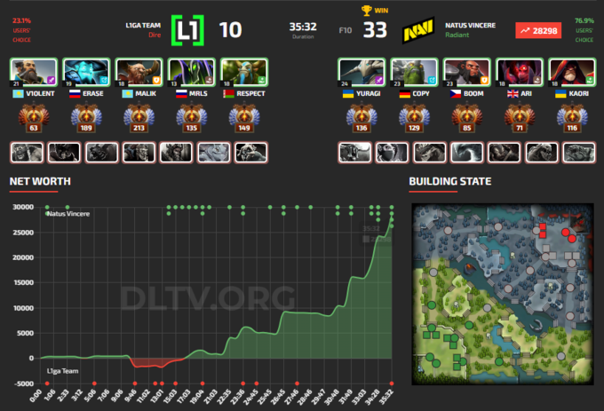 Украинская команда NAVI начала с уверенной победы на первой карте, счет там был разгромным – 33-10, хорошо себя показал украинец Артем «Yuragi» Голубев на Sven. Его финальная статистика 11/1/9. На второй у Natus Vincere совсем не пошло и L1GA сравняла счет. Невероятный импакт там был от керри Shadow Fiend.