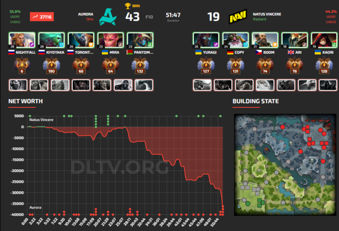 Матч завершился со счетом 1:2 в пользу Aurora Gaming