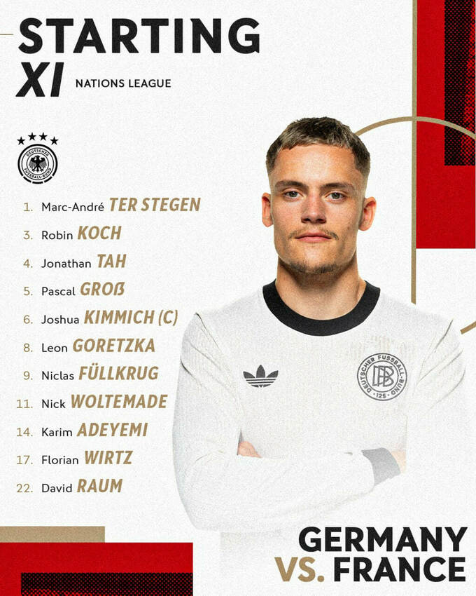 Стартовые составы на матч Германия – Франция: